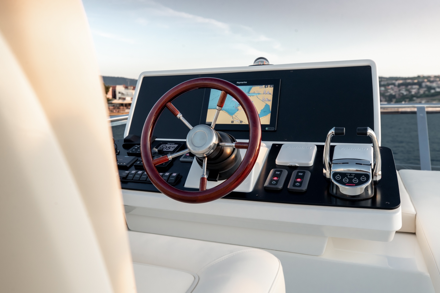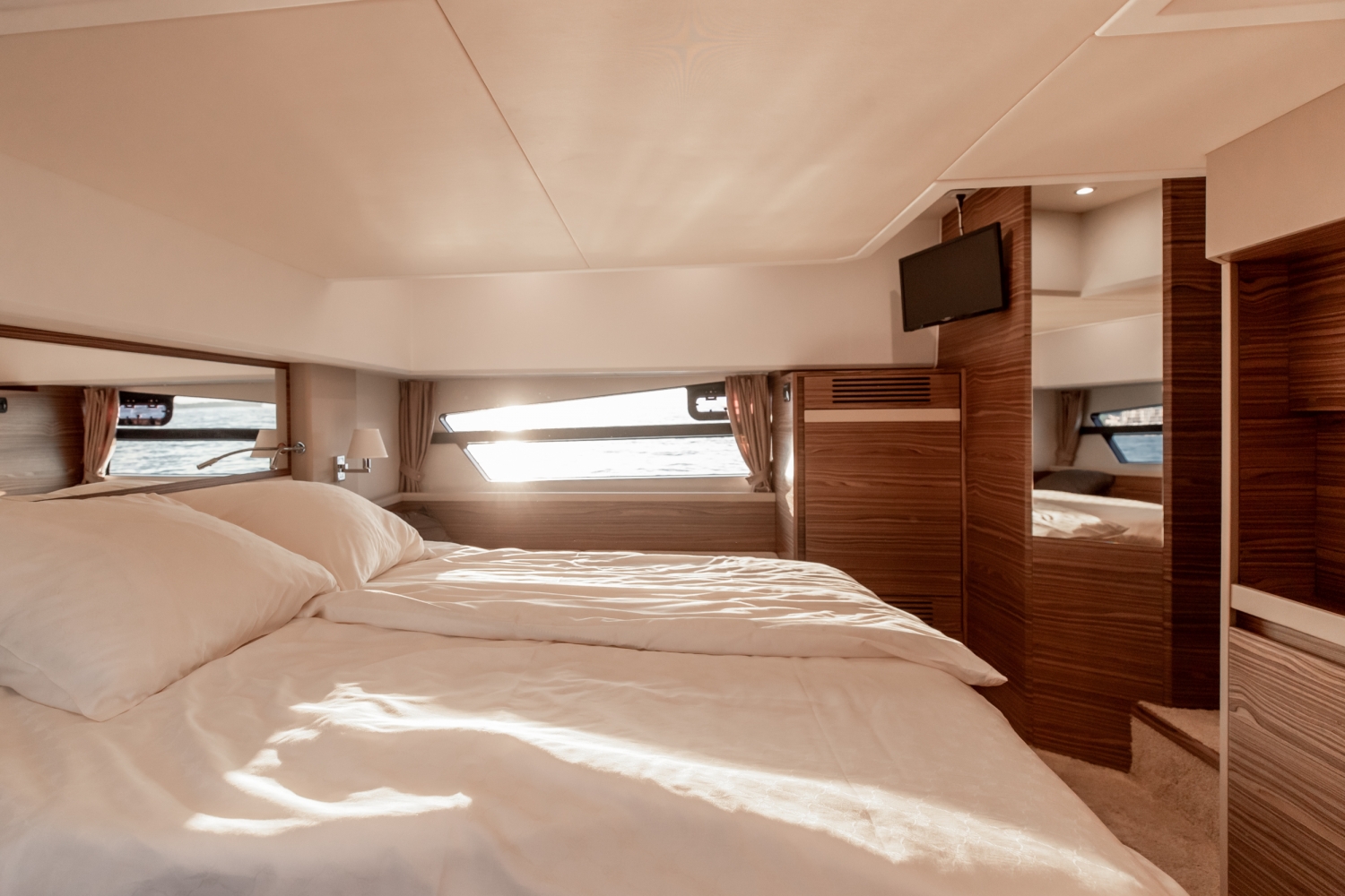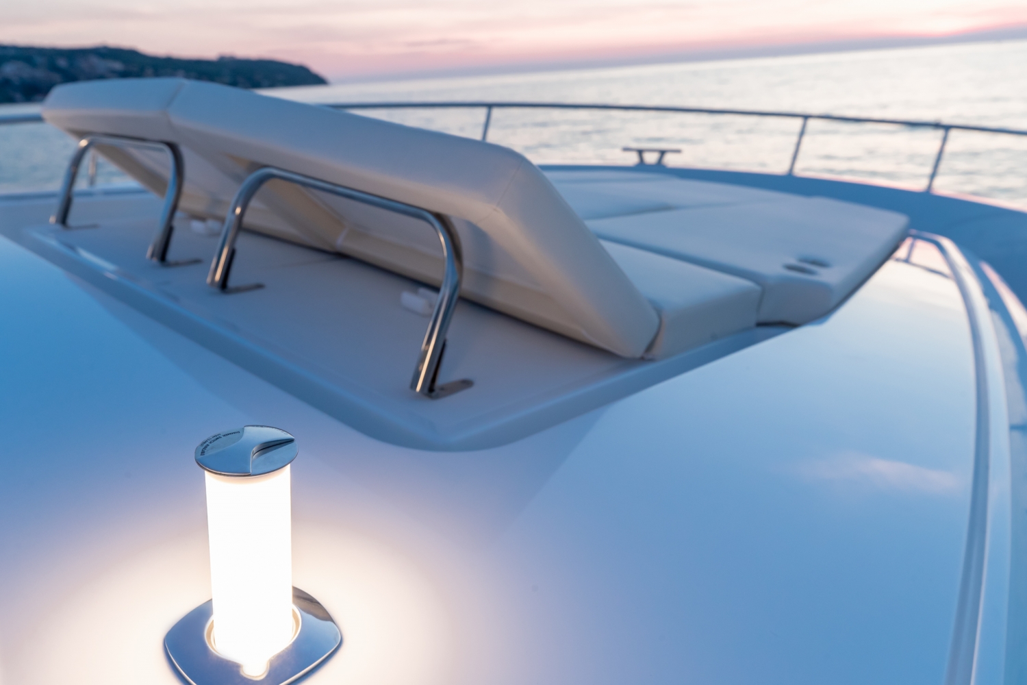 Cleverly designed cut-outs in the cap-rails enhance visibility from the VIP cabin in the bow area. Further forward on the foredeck there is another sun lounge, with an optional bimini, and access to the anchor locker for the bow roller and windlass.